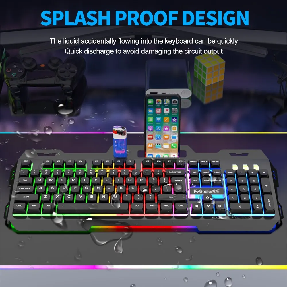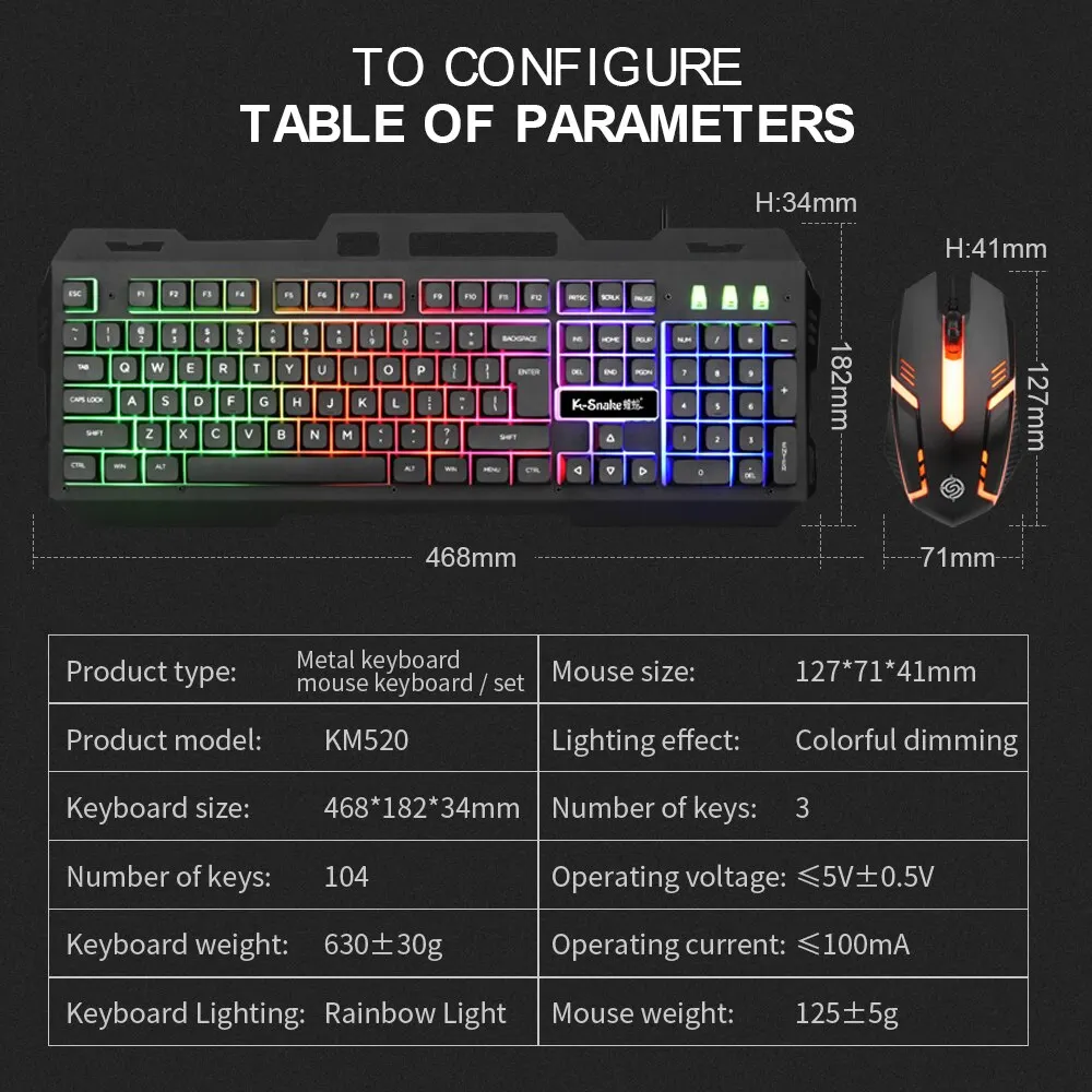 It is ergonomically designed to reduce the fatigue of long-term use, convenience and comfort. And it is also equipped with a variety of multimedia key combinations, suitable for games or office or home.The gaming keyboard adopts a game-style floating keycap, and the keycap adopts two-color injection molding technology to prevent wear and tear for long-term use. The aluminum alloy metal panel is also waterproof and durable.