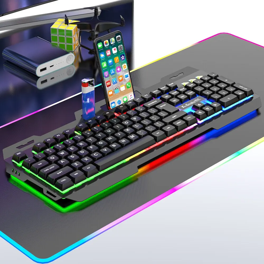 There are multiple storage brackets like the pen/lighter/phone holder on the keyboard to make your desktop more tidy, and the mobile phone holder can realize playing game and chatting at the same time. It can perfectly solve the problem of placing the mobile phone during the game.