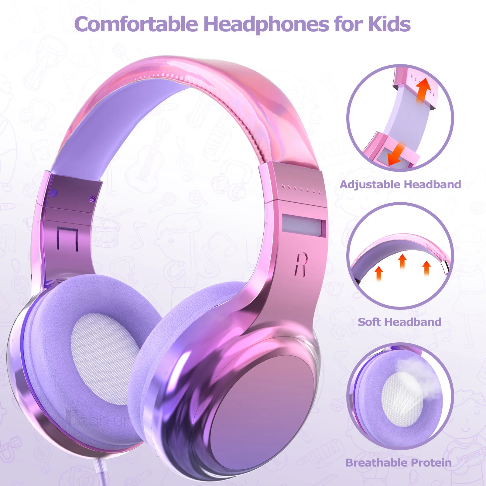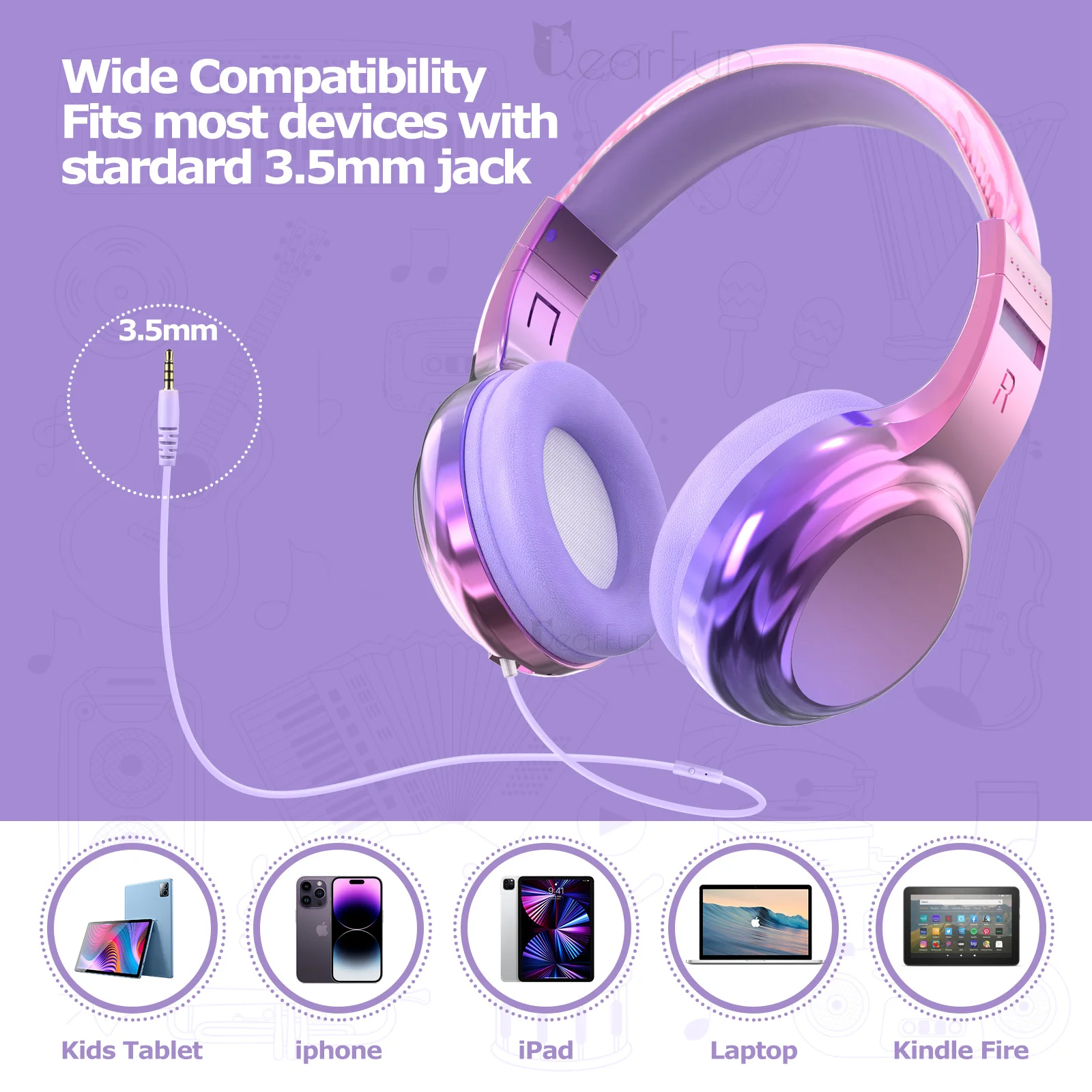 Kids Headphones With Microphone Girls Wired Headphones Adjustable Stereo Headset Children Headphones for School Tablet Kids Gift