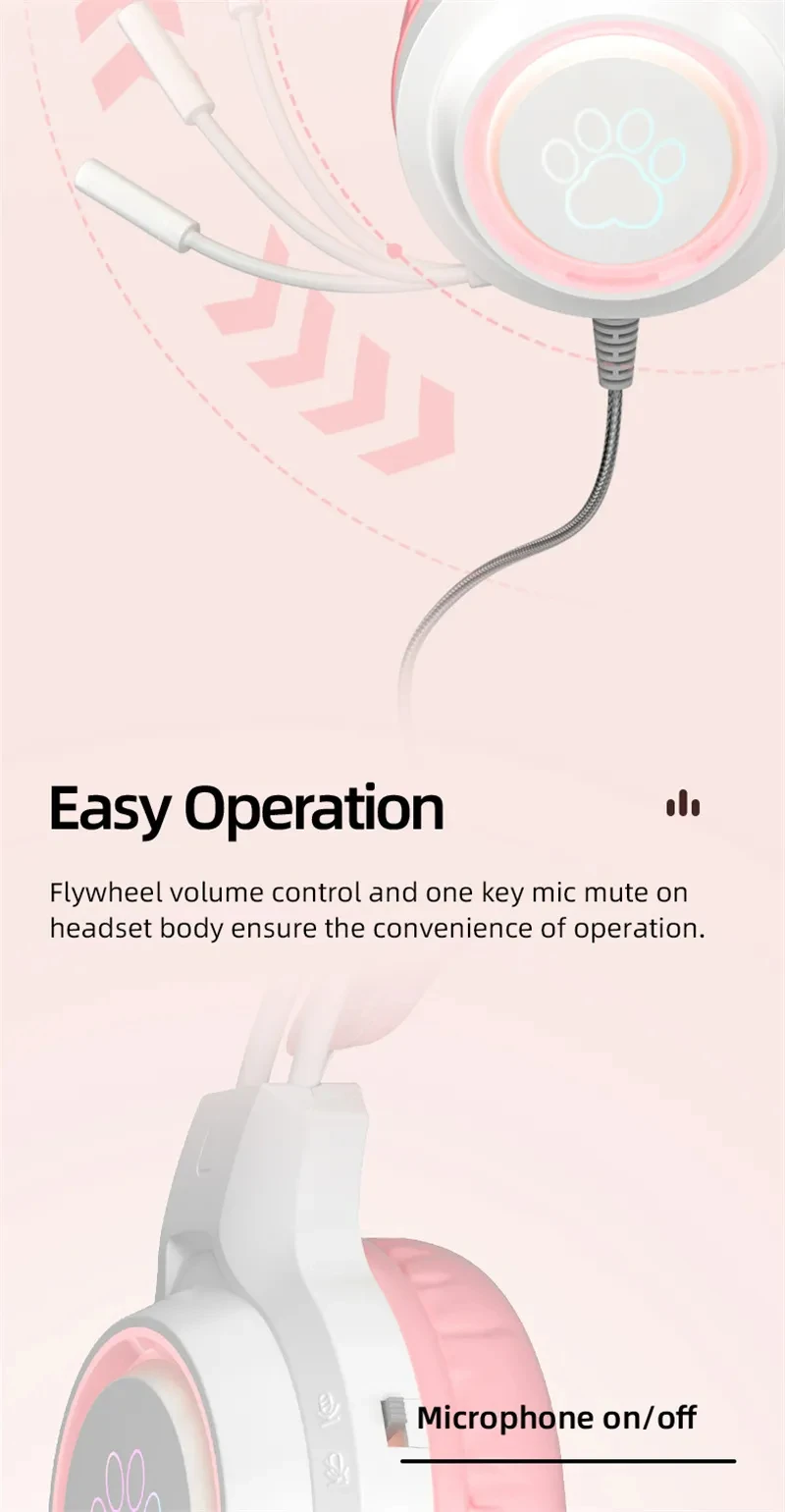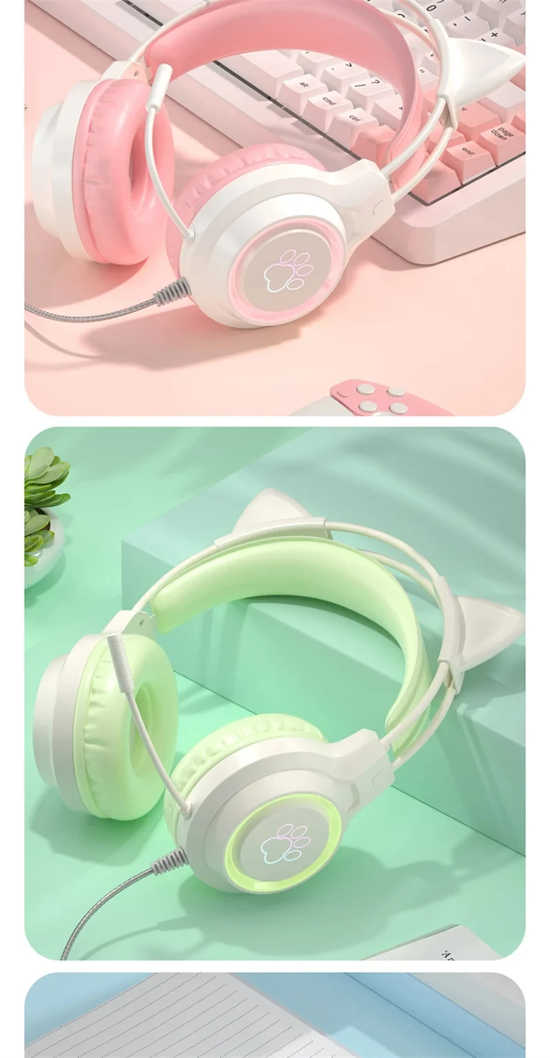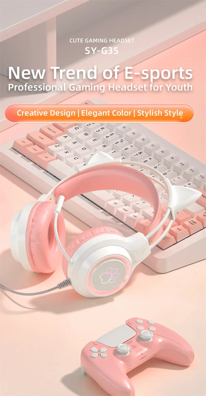New Arrivals SY-G35 Wired Cat Ear Headphones RGB Lighting 360° Noise Canceling Mic HiFi Sound Quality PC Laptop Gaming Headset