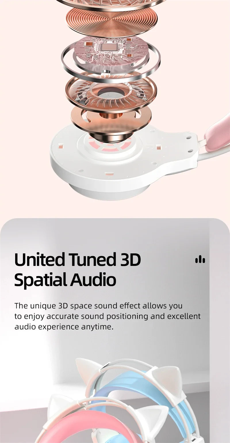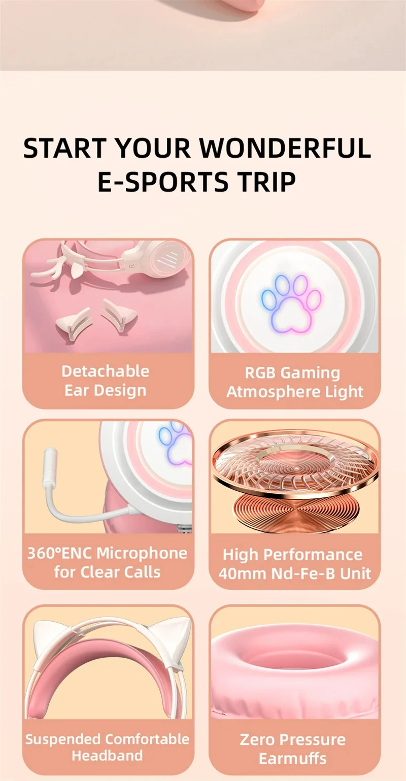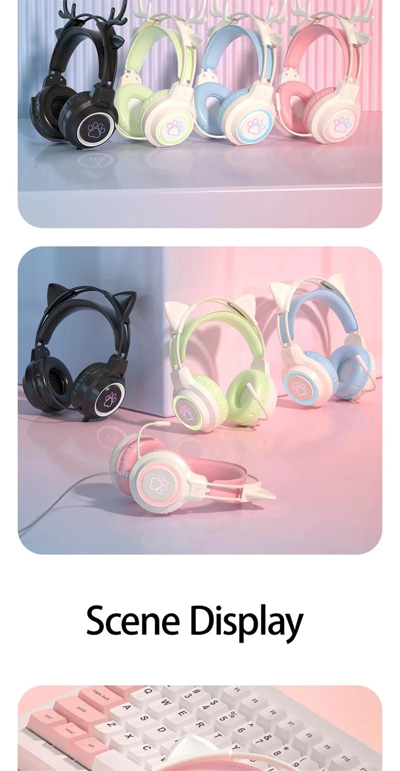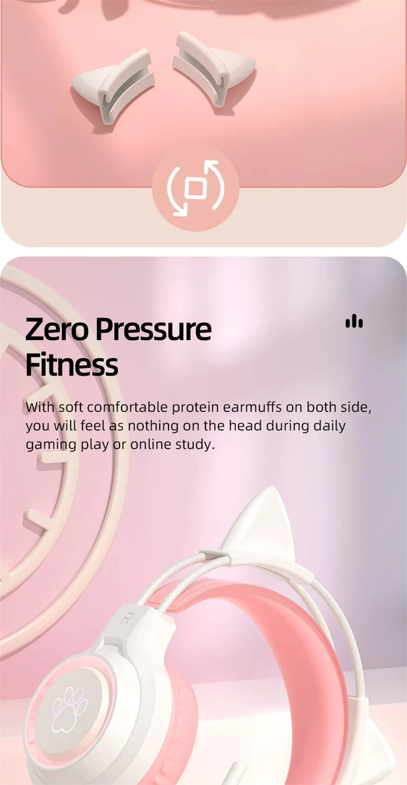 New Arrivals SY-G35 Wired Cat Ear Headphones RGB Lighting 360° Noise Canceling Mic HiFi Sound Quality PC Laptop Gaming Headset