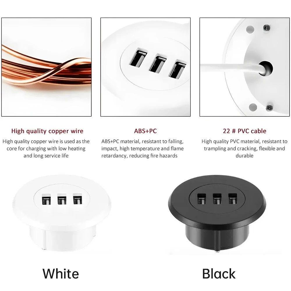 1. [Hidden] Office desk opening USB charger, embedded, hidden charging, space saving, and clean desktop.