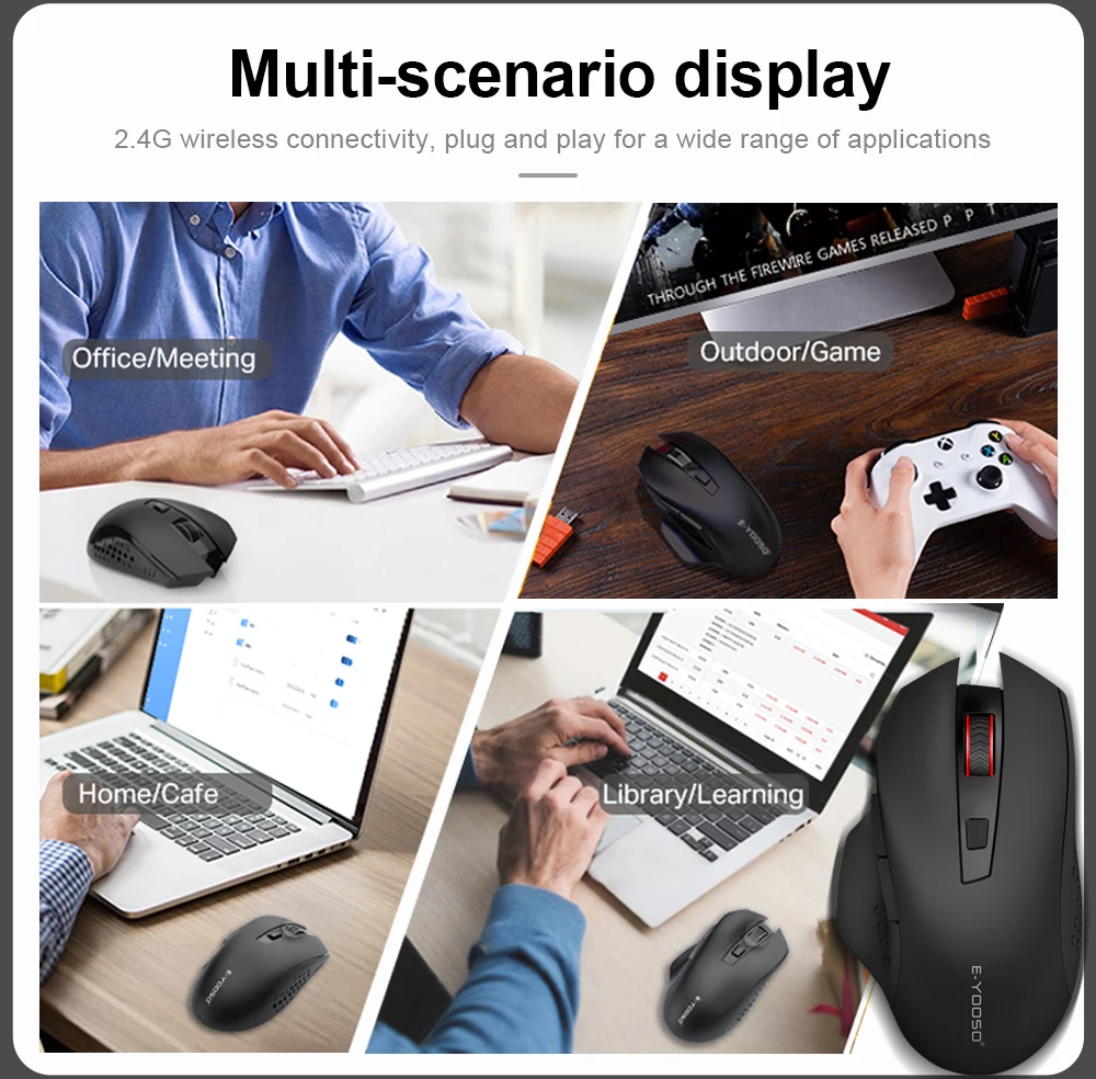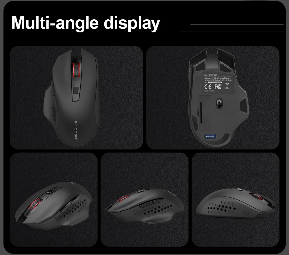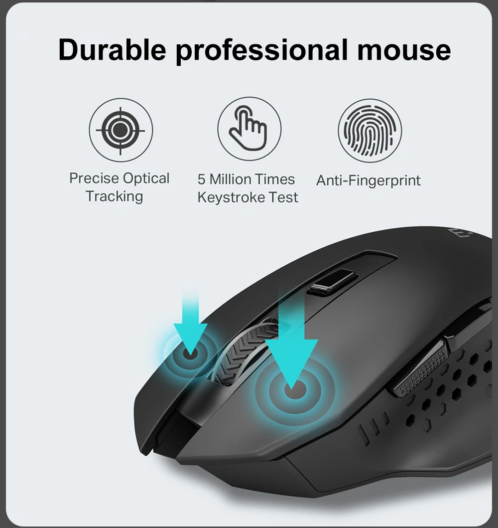 Anti-Sweat & Ergonomic Design: E-YOOSO Mouse is made of anti-slip and anti-sweat custom material, built with a comfortable contoured shape The finger rests on both sides of the mouse provide additional support, every finger can hold comfortably for a long time. and also has forward and backward buttons, make your web surfing more efficient, perfect performance for more than 50,000,000 keystrokes!